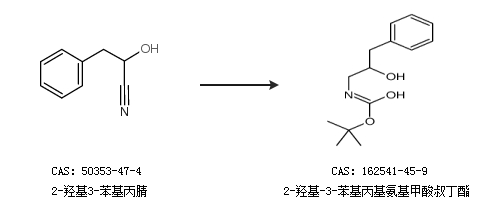 2.通过2-羟基3-苯基丙腈合成2-羟基-3-苯基丙基氨基甲酸叔丁酯