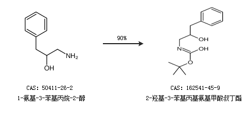 1.通过1-氨基-3-苯基丙烷-2-醇合成2-羟基-3-苯基丙基氨基甲酸叔丁酯,收率约90%;