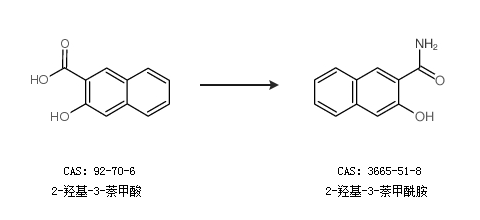 英文别名 3-hydroxy-2-aminocarbonylnaphthalene;2-hydroxynaphthalene-3-carboxamide;EINECS 222-926-6;3-hydroxy-naphthalene-2-carboxylic acid amide;3-hydroxy-2-naphthalenecarboxamide;2-Hydroxy-3-naphthoamide;2-Hydroxy-3-naphthamide;3-Hydroxy-5,6,7,8-tetrahydro-2-naphthoic Amide;2-Naphthalenecarboxamide,3-hydroxy;2-Hydroxy-3-naphthalenecarboxamide;3-Hydroxy-2-naphthamide;2-NAPHTHAMIDE,3-HYDROXY;