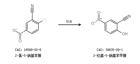 2.通过2-氯-5-硝基苯腈合成2-羟基-5-硝基苯甲腈,收率约51%;