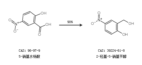 2.通过5-硝基水杨酸合成2-羟基-5-硝基苄醇,收率约90%;