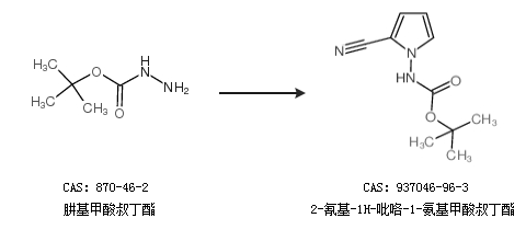 2.通过肼基甲酸叔丁酯合成2-氰基-1H-吡咯-1-氨基甲酸叔丁酯