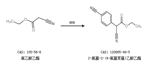 2.通过氰乙酸乙酯合成2-氰基-2-(4-氰基苯基)乙酸乙酯,收率约98%;