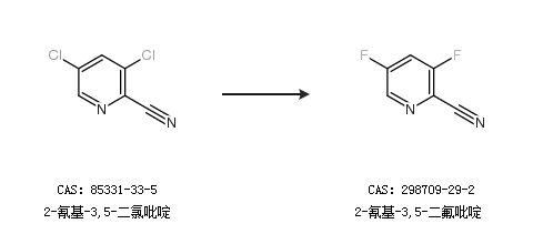 1.通过2-氰基-3,5-二氯吡啶合成2-氰基-3,5-二氟吡啶
