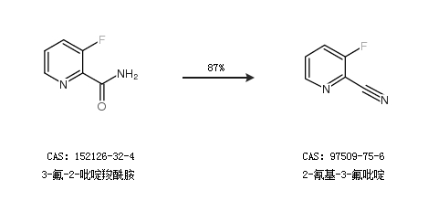 2.通过3-氟-2-吡啶羧酰胺合成2-氰基-3-氟吡啶,收率约87%;