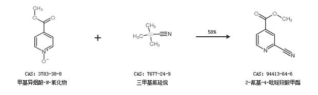 1.通过甲基异烟酸-N-氧化物和三甲基氰硅烷合成2-氰基-4-吡啶羧酸甲酯,收率约58%;