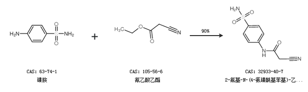 1.通过磺胺和氰乙酸乙酯合成2-氰基-N-(4-氨磺酰基苯基)-乙酰胺,收率约90%;