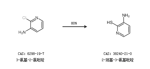 1.通过3-氨基-2-氯吡啶合成2-巯基-3-氨基吡啶,收率约80%;
