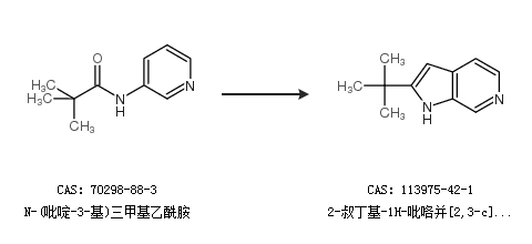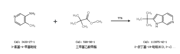 1.通过3-氨基-4-甲基吡啶和三甲基乙酸甲酯合成2-叔丁基-1H-吡咯并[2,3-c]吡啶,收率约77%;