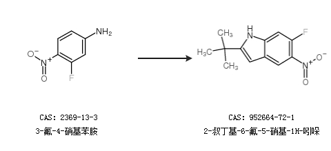 1.通过3-氟-4-硝基苯胺合成2-叔丁基-6-氟-5-硝基-1H-吲哚