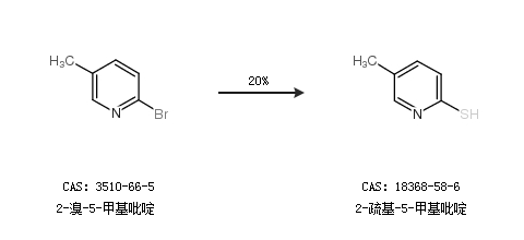1.通过2-溴-5-甲基吡啶合成2-疏基-5-甲基吡啶,收率约20%;
