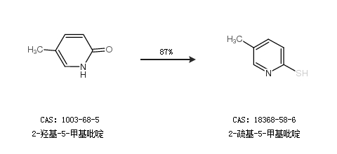 2.通过2-羟基-5-甲基吡啶合成2-疏基-5-甲基吡啶,收率约87%;