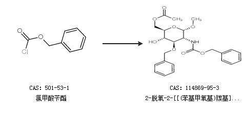 2.通过氯甲酸苄酯合成2-脱氧-2-[[(苯基甲氧基)羰基]氨基]-3-O-(苯基甲基)-alpha-D-吡喃葡萄糖苷 6-乙酸甲酯