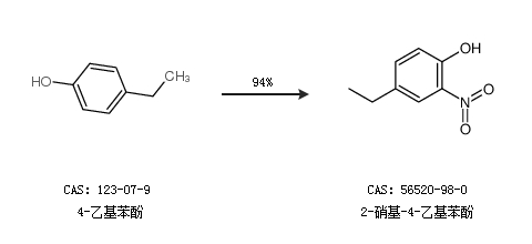 1.通过4-乙基苯酚合成2-硝基-4-乙基苯酚,收率约94%;