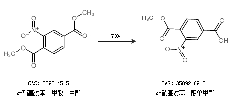 1.通过2-硝基对苯二甲酸二甲酯合成2-硝基对苯二酸单甲酯,收率约73%;