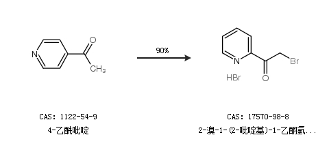2.通过4-乙酰吡啶合成2-溴-1-(2-吡啶基)-1-乙酮氢溴酸,收率约90%;