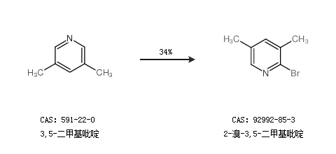 2.通过3,5-二甲基吡啶合成2-溴-3,5-二甲基吡啶,收率约34%;