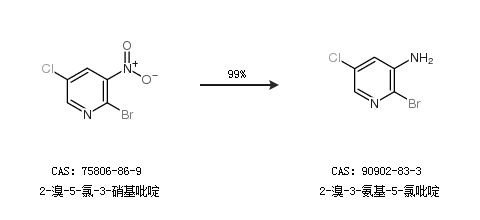 1.通过2-溴-5-氯-3-硝基吡啶合成2-溴-3-氨基-5-氯吡啶,收率约99%;
