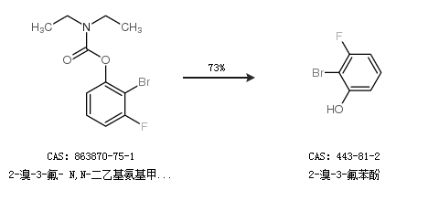 2.通过2-溴-3-氟- N,N-二乙基氨基甲酸苯酯合成2-溴-3-氟苯酚,收率约73%;