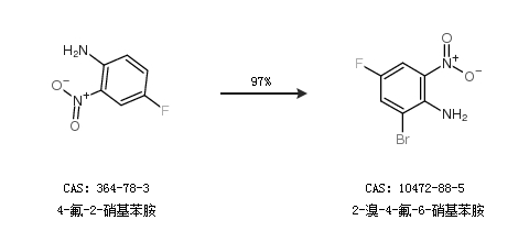 1.通过4-氟-2-硝基苯胺合成2-溴-4-氟-6-硝基苯胺,收率约97%;