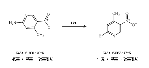 2.通过2-氨基-4-甲基-5-硝基吡啶合成2-溴-4-甲基-5-硝基吡啶,收率约17%;