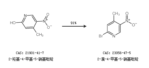 1.通过2-羟基-4-甲基-5-硝基吡啶合成2-溴-4-甲基-5-硝基吡啶,收率约91%;