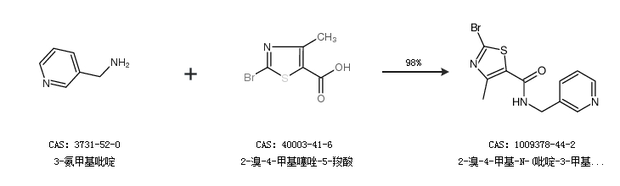 1.通过3-氨甲基吡啶和2-溴-4-甲基噻唑-5-羧酸合成2-溴-4-甲基-N-(吡啶-3-甲基)噻唑-5-羧酰胺,收率约98%;