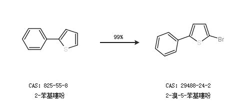 1.通过2-苯基噻吩合成2-溴-5-苯基噻吩,收率约99%;