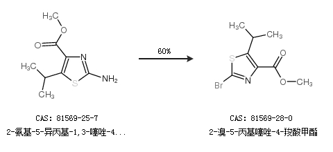 1.通过2-氨基-5-异丙基-1,3-噻唑-4-羧酸甲酯合成2-溴-5-丙基噻唑-4-羧酸甲酯,收率约60%;