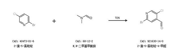 1.通过2-溴-5-氯吡啶和N,N-二甲基甲酰胺合成2-溴-5-氯吡啶-4-甲醛,收率约72%;