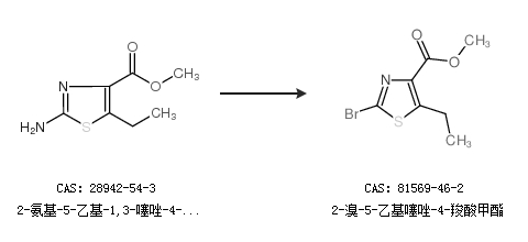 1.通过2-氨基-5-乙基-1,3-噻唑-4-羧酸甲酯合成2-溴-5-乙基噻唑-4-羧酸甲酯