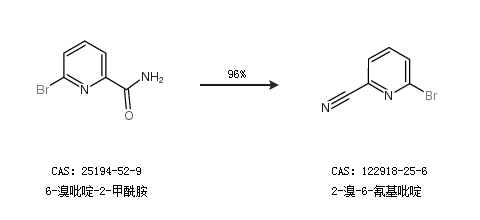 1.通过6-溴吡啶-2-甲酰胺合成2-溴-6-氰基吡啶,收率约96%;