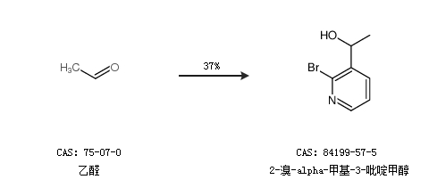 1.通过乙醛合成2-溴-alpha-甲基-3-吡啶甲醇,收率约37%;