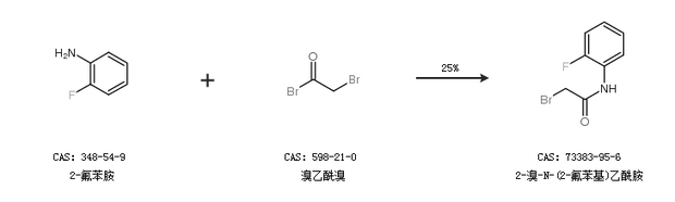 1.通过2-氟苯胺和溴乙酰溴合成2-溴-N-(2-氟苯基)乙酰胺,收率约25%;