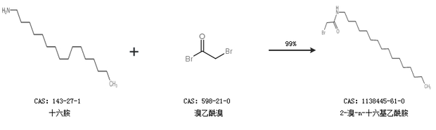 1.通过十六胺和溴乙酰溴合成2-溴-n-十六基乙酰胺,收率约99%;