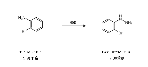 1.通过2-溴苯胺合成2-溴苯肼,收率约90%;