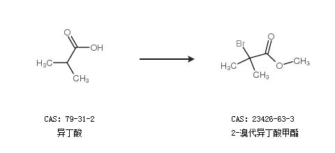 1.通过异丁酸合成2-溴代异丁酸甲酯