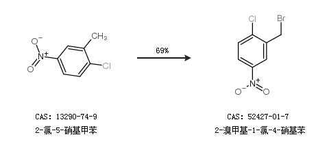 1.通过2-氯-5-硝基甲苯合成2-溴甲基-1-氯-4-硝基苯,收率约69%;