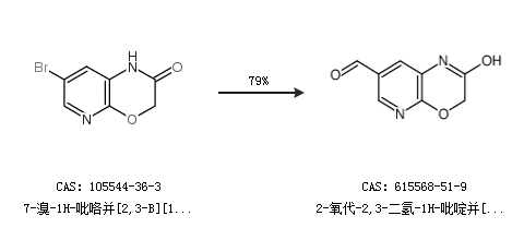 1.通过7-溴-1H-吡咯并[2,3-B][1,4]恶嗪-2(3H)-酮合成2-氧代-2,3-二氢-1H-吡啶并[2,3-b][1,4]噁嗪-7-甲醛,收率约79%;