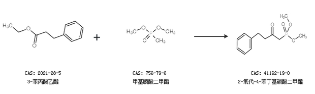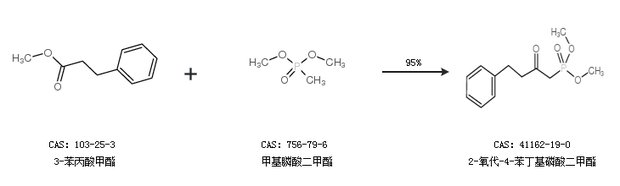 1.通过3-苯丙酸甲酯和甲基膦酸二甲酯合成2-氧代-4-苯丁基磷酸二甲酯,收率约95%;