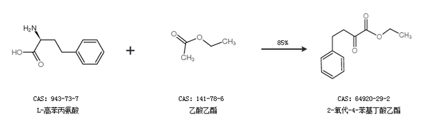 2.通过L-高苯丙氨酸和乙酸乙酯合成2-氧代-4-苯基丁酸乙酯,收率约85%;
