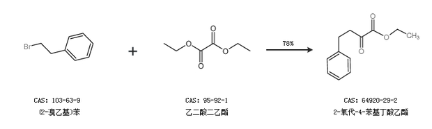 1.通过(2-溴乙基)苯和乙二酸二乙酯合成2-氧代-4-苯基丁酸乙酯,收率约78%;