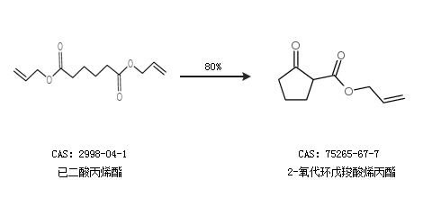 1.通过已二酸丙烯酯合成2-氧代环戊羧酸烯丙酯,收率约80%;