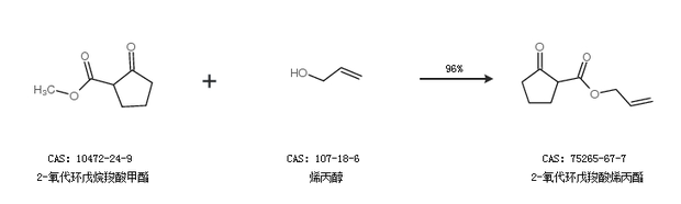 2.通过2-氧代环戊烷羧酸甲酯和烯丙醇合成2-氧代环戊羧酸烯丙酯,收率约96%;