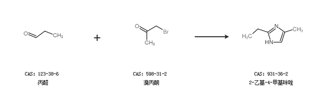 2.通过丙醛和溴丙酮合成2-乙基-4-甲基咪唑