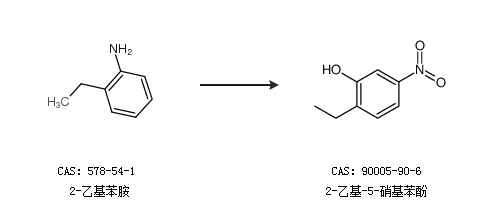 1.通过2-乙基苯胺合成2-乙基-5-硝基苯酚
