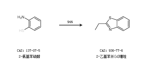 2.通过2-氨基苯硫醇合成2-乙基苯并[d]噻唑,收率约94%;