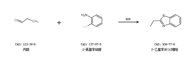 1.通过丙醛和2-氨基苯硫醇合成2-乙基苯并[d]噻唑,收率约90%;