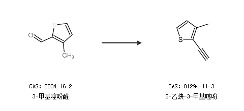 1.通过3-甲基噻吩醛合成2-乙炔-3-甲基噻吩