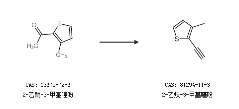 2.通过2-乙酰-3-甲基噻吩合成2-乙炔-3-甲基噻吩